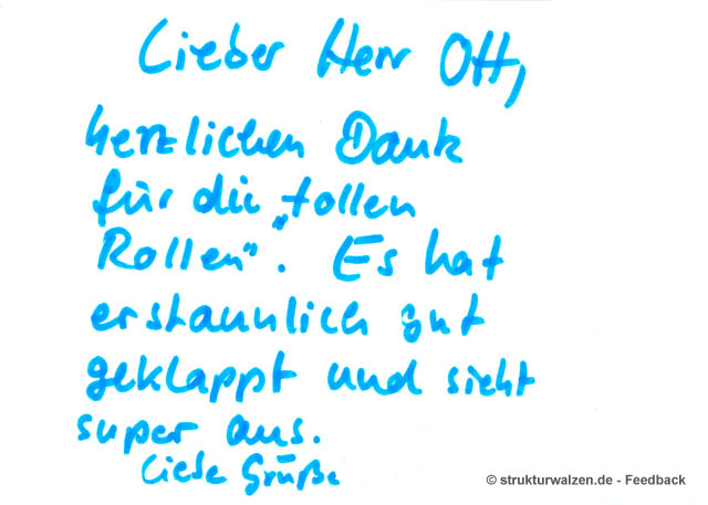Away from the common feedback and experiences in review sites I show a few examples of authentic online reviews from the feedback and experiences of our customers with our products such as structured rolls and the appropriate tools.
